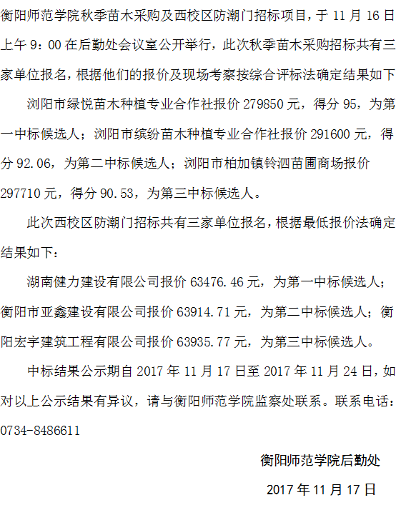 永利14m在线登录官网秋季苗木采购及西校区防潮门招标中标结果公示