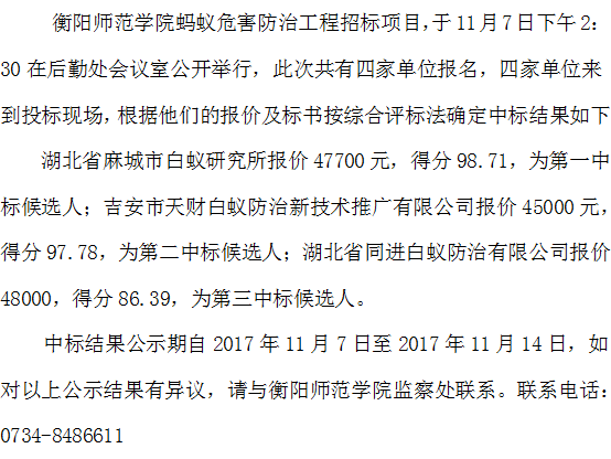 永利14m在线登录官网蚂蚁危害防治工程招标中标结果公示