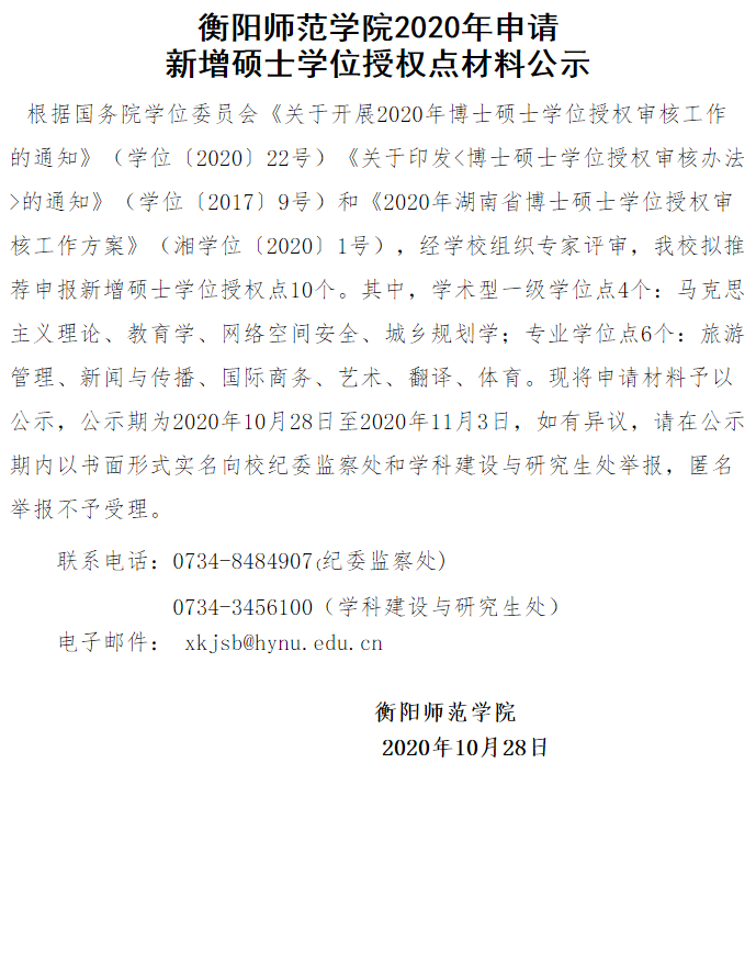 永利14m在线登录官网2020年申请新增硕士学位授权点材料公示